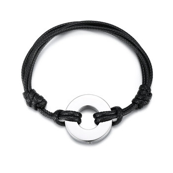 Black Nylon Wax Cotton Circle Charm Urn Ash Man Bracelet Cremation Jewelry Keepsake for Men