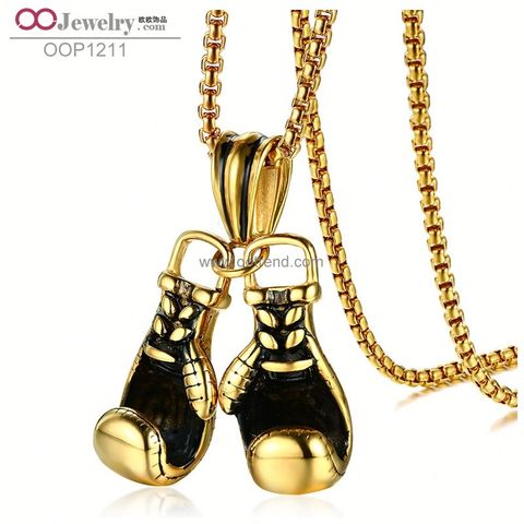 Guantes de boxeo con colgante, guantes de boxeo, color dorado, negro y plateado, de acero inoxidable resistente, precio al por mayor