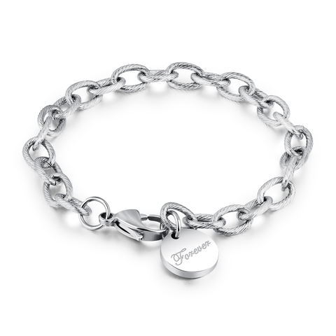 Grand anneau de câble rolo de conception de Texture, bracelet lié avec bracelet de charme de pièce de monnaie de cercle gravé personnalisé de placage PVD, placage IP