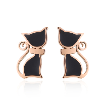 십대 소녀 어린이를위한 사랑스러운 로즈 골드 블랙 에나멜 포스트 스터드 귀걸이 유행 고양이 디자인 스테인레스 스틸 보석 선물