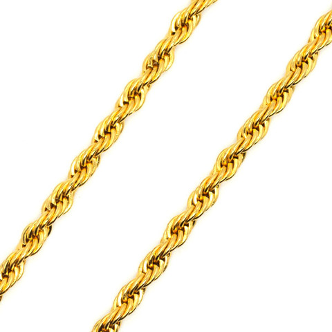 Impermeável Nunca Fade Hiphop Titanium Aço Aço Inoxidável 3mm Gold Filled Gold Plating Rope Chain Necklace